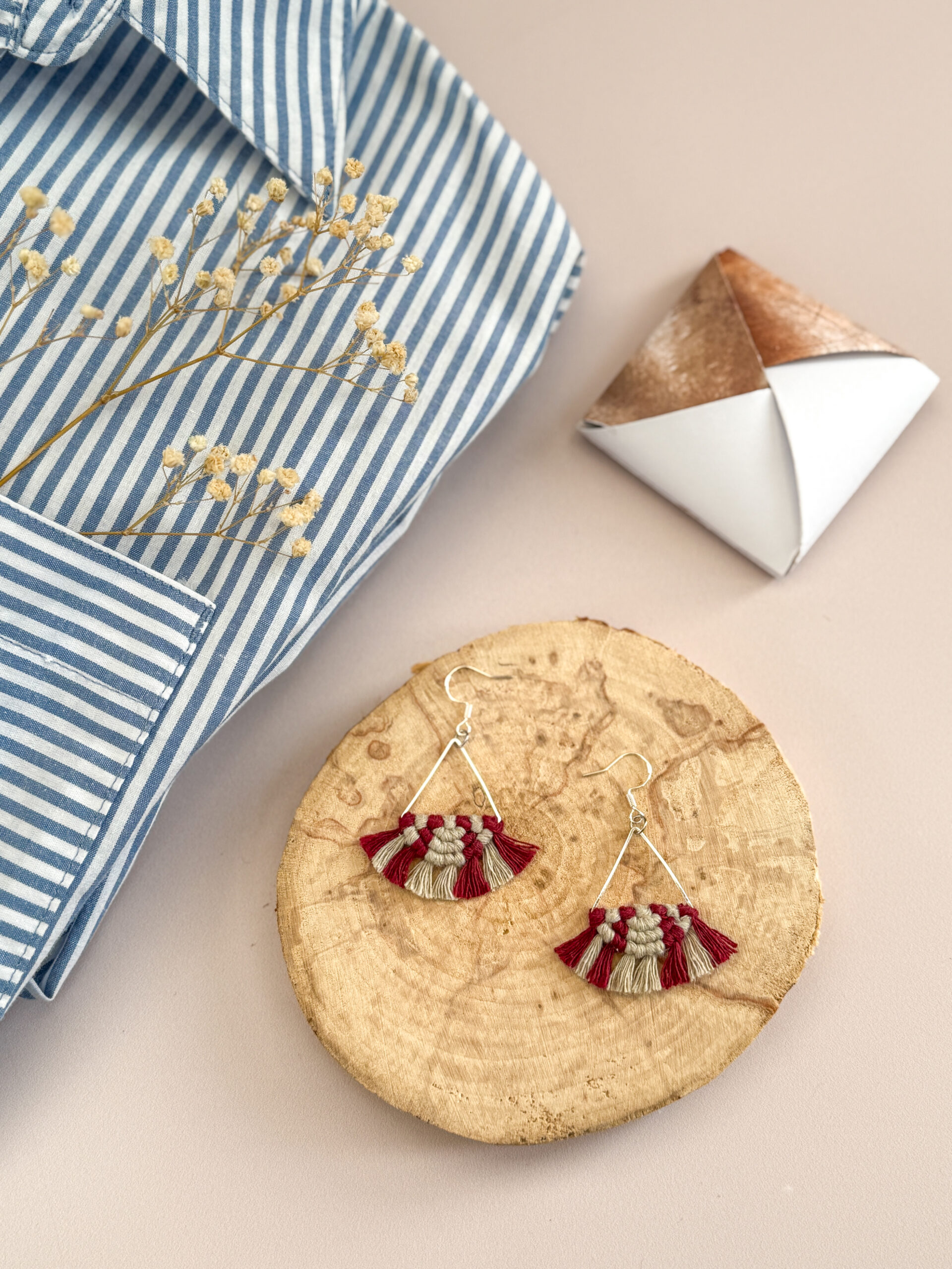 - Chaque création est placée dans un petit écrin en papier que je plie à la main. Il se déploie à l’ouverture pour révéler les boucles d’oreilles.