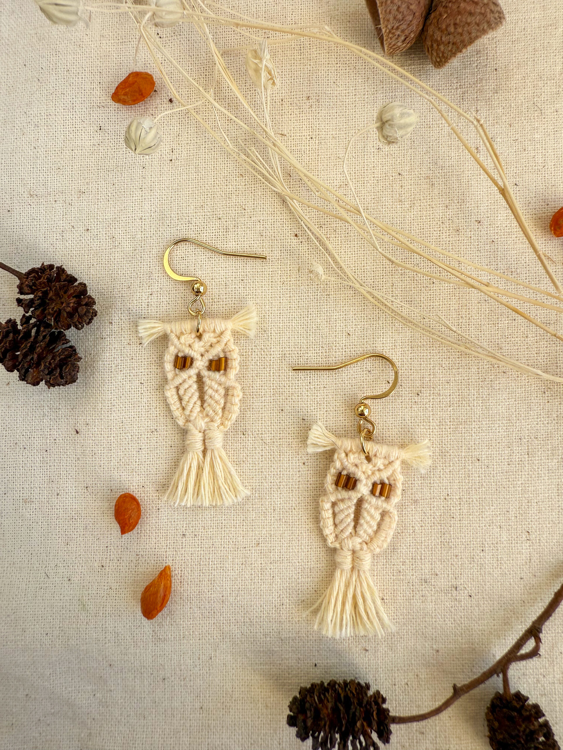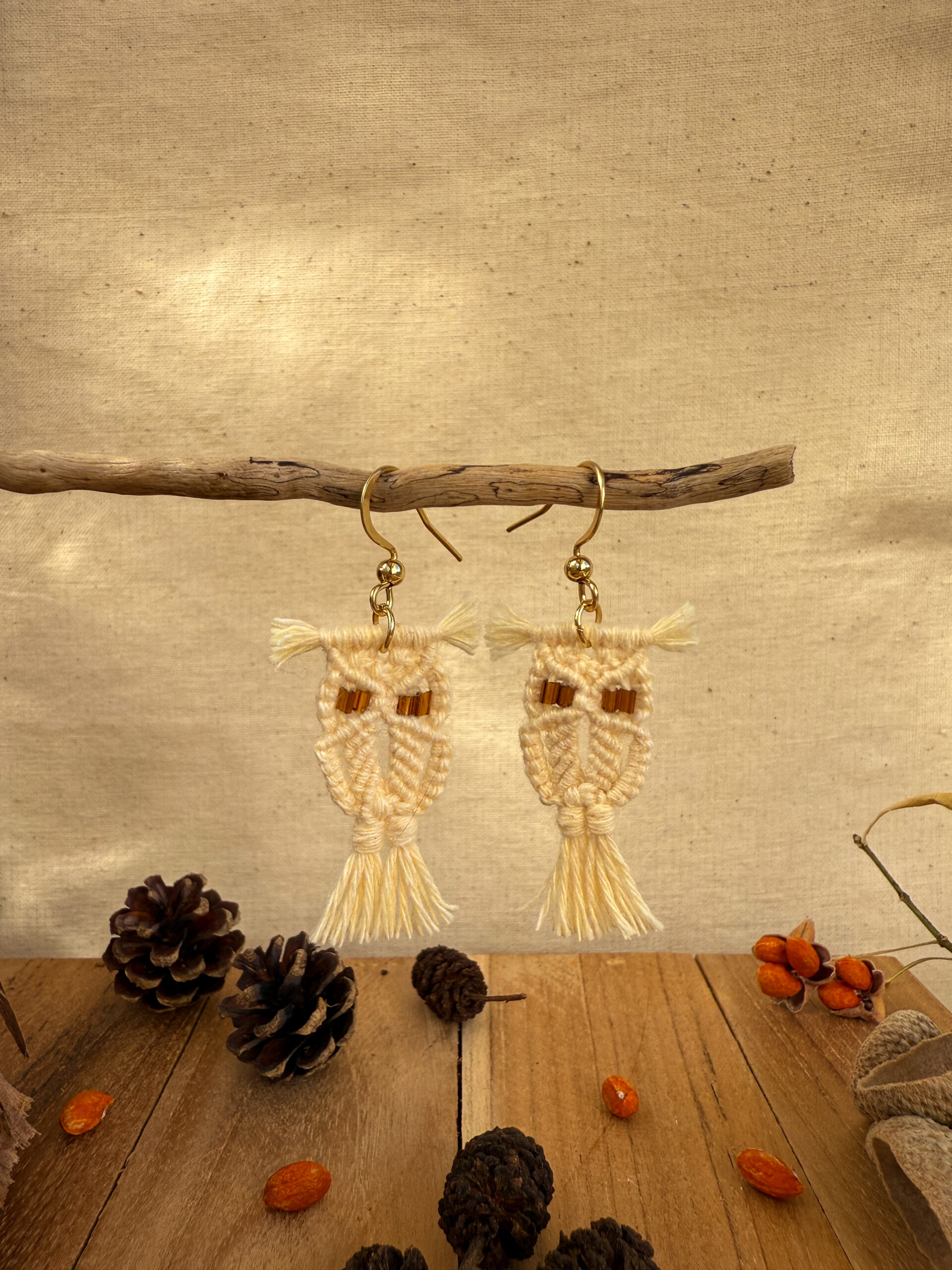 Laissez-vous séduire par ces boucles d’oreilles en macramé en forme de hiboux, symbole de sagesse et de mystère.
