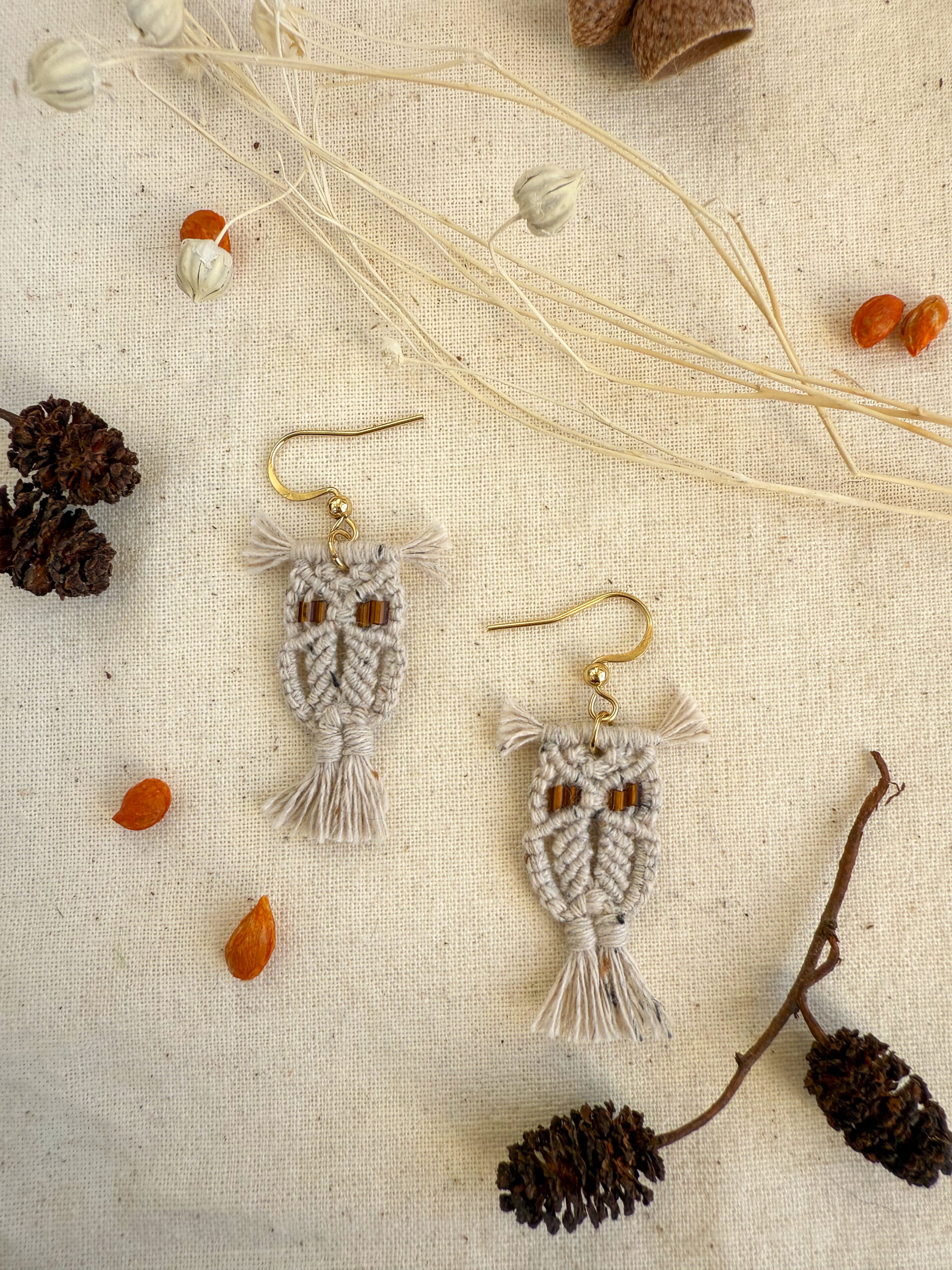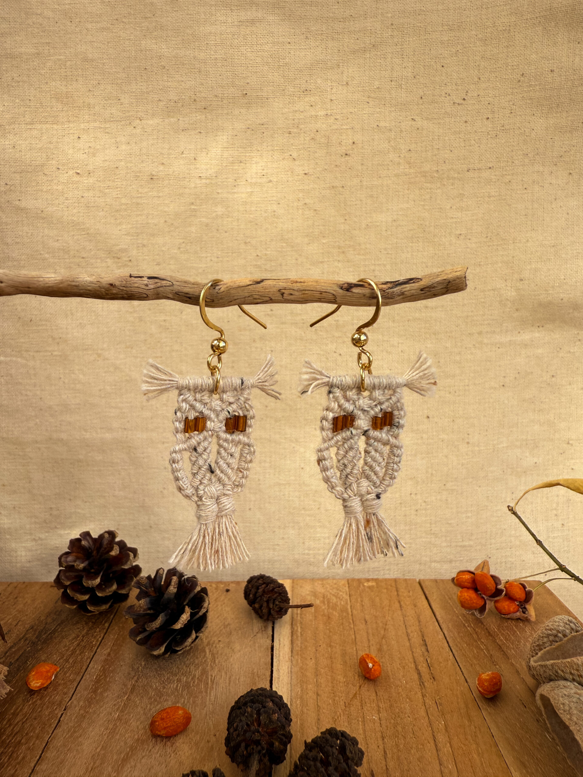 Laissez-vous séduire par ces boucles d’oreilles en macramé en forme de hiboux, symbole de sagesse et de mystère.
