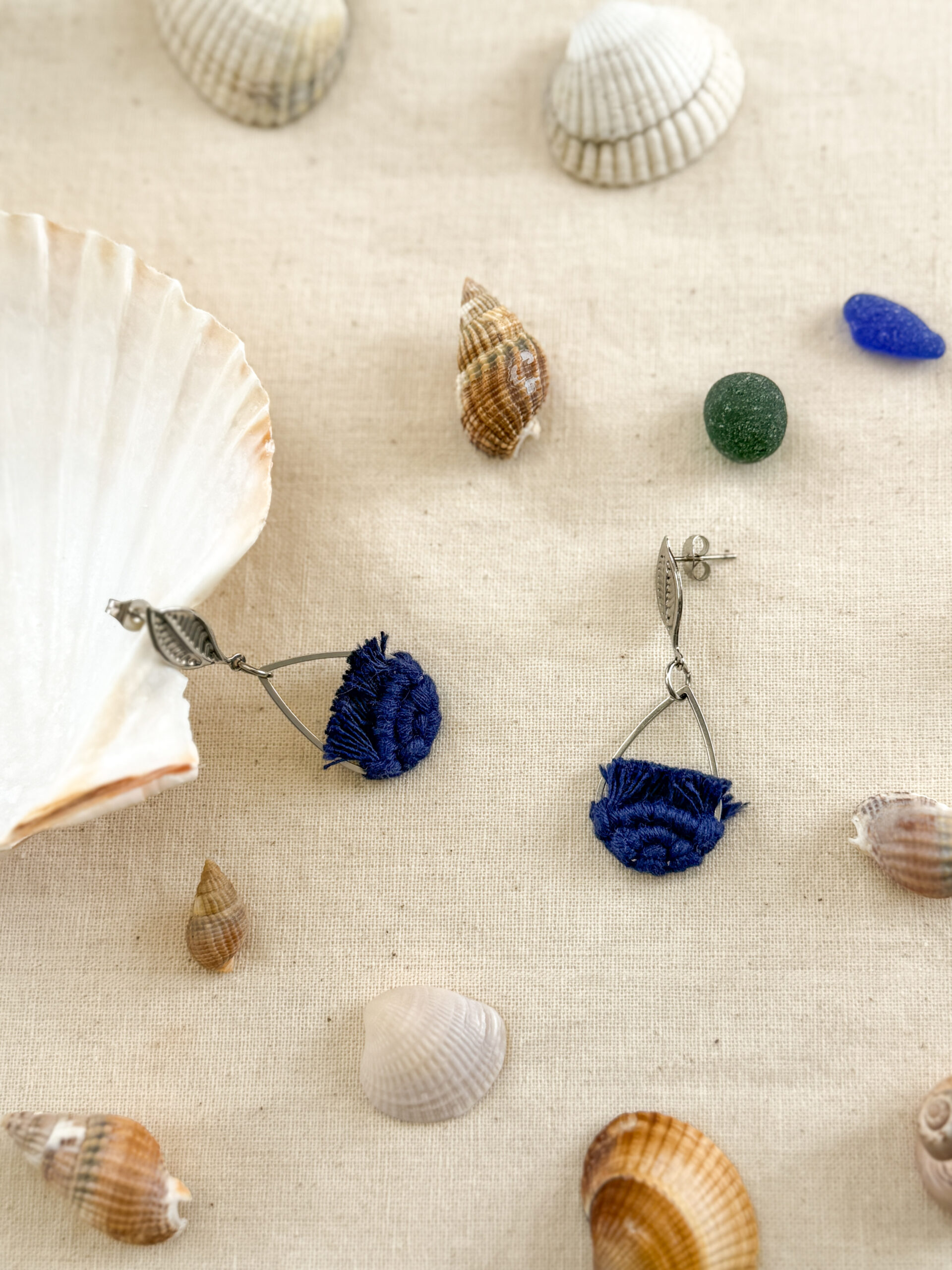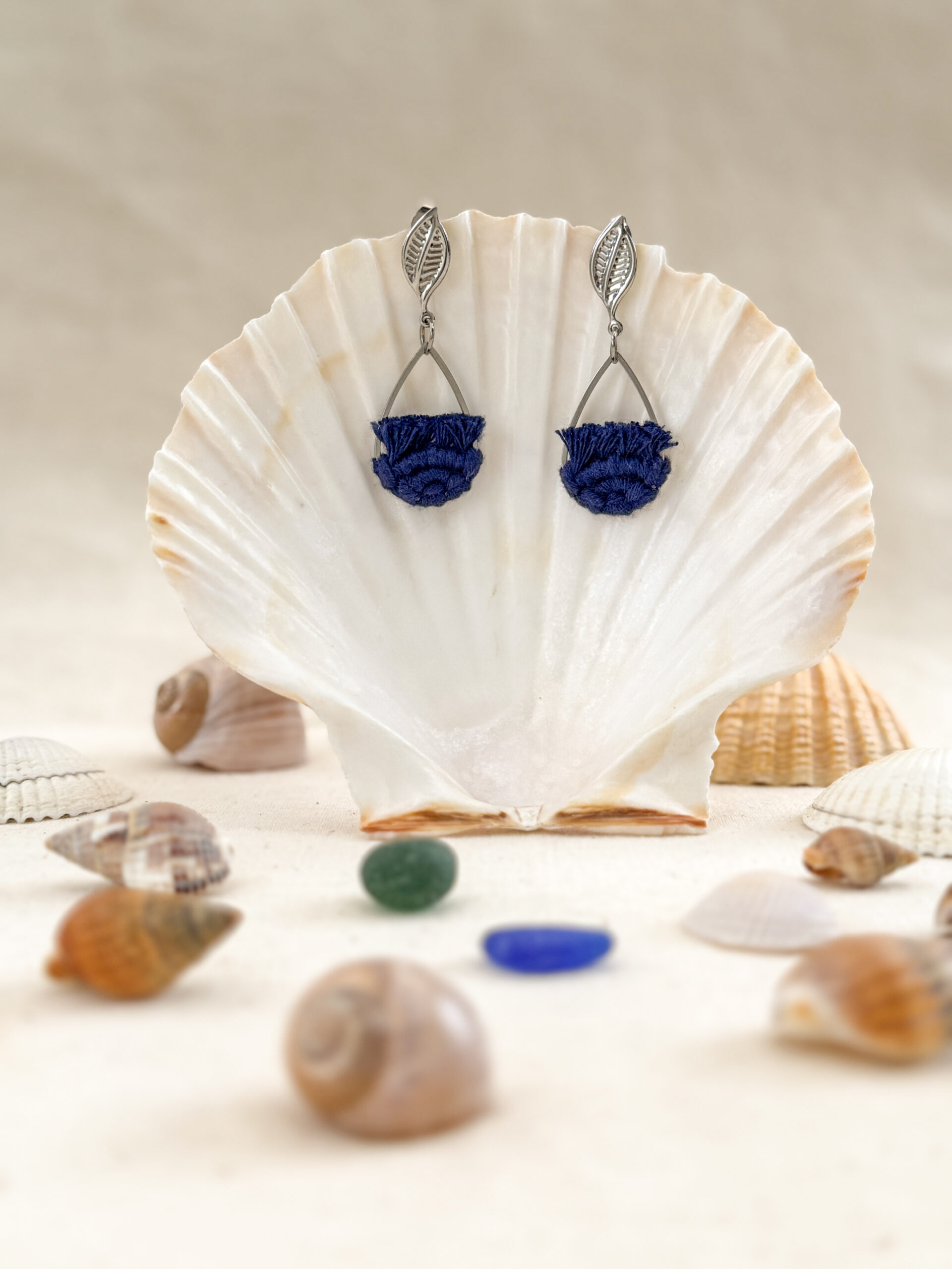Comme une brise qui effleure la surface de l’eau, Ondine est une invitation à la douceur et à la légèreté. Ces boucles d’oreilles en macramé, tissées à la main avec soin sont confectionnées en 100 % coton certifié Oeko-Tex, garantissant un contact sûr et respectueux avec la peau. Les attaches en forme de feuille et les gouttes en acier inoxydable ajoutent une touche délicate et élégante, tout en assurant confort et durabilité.