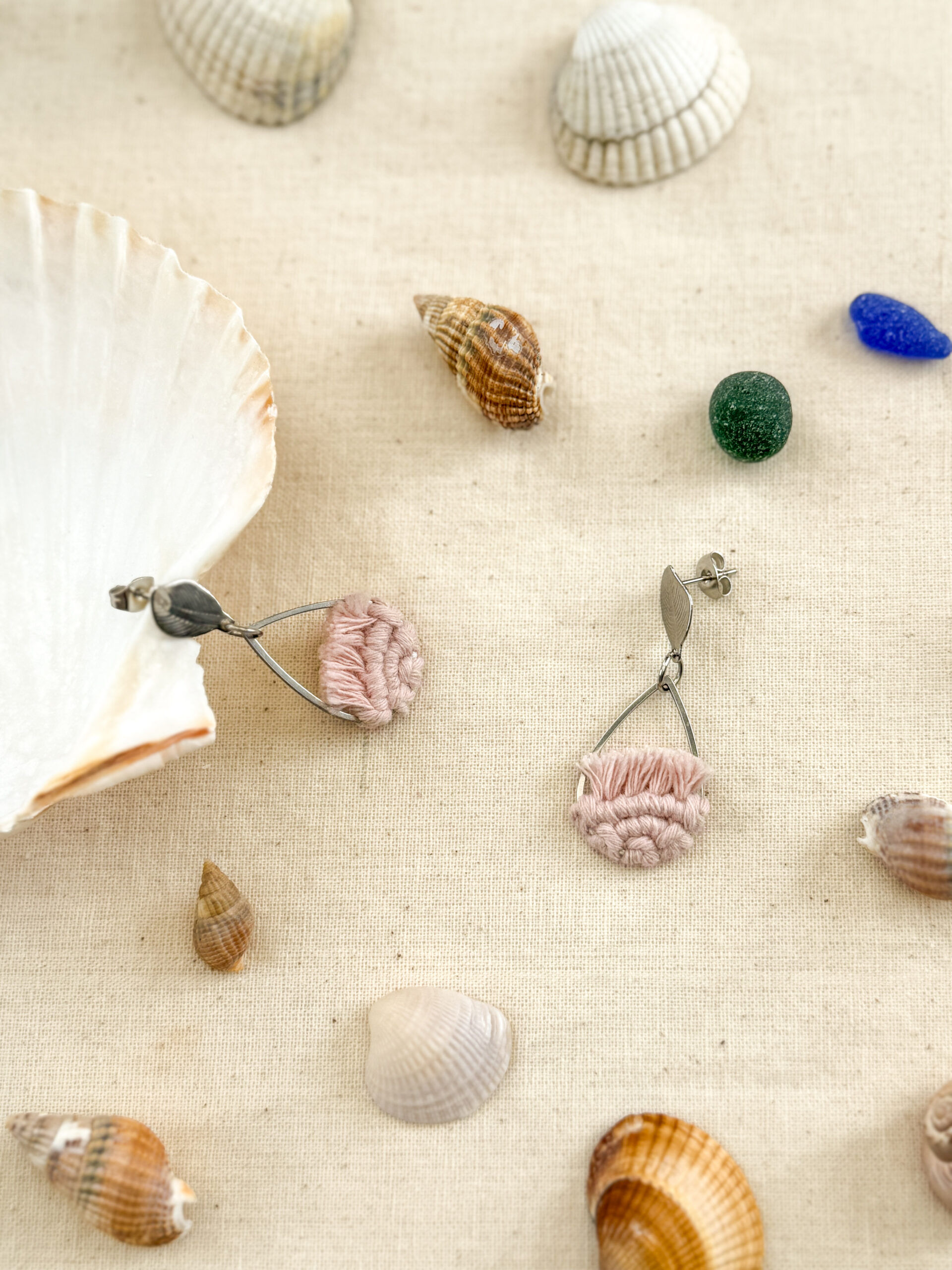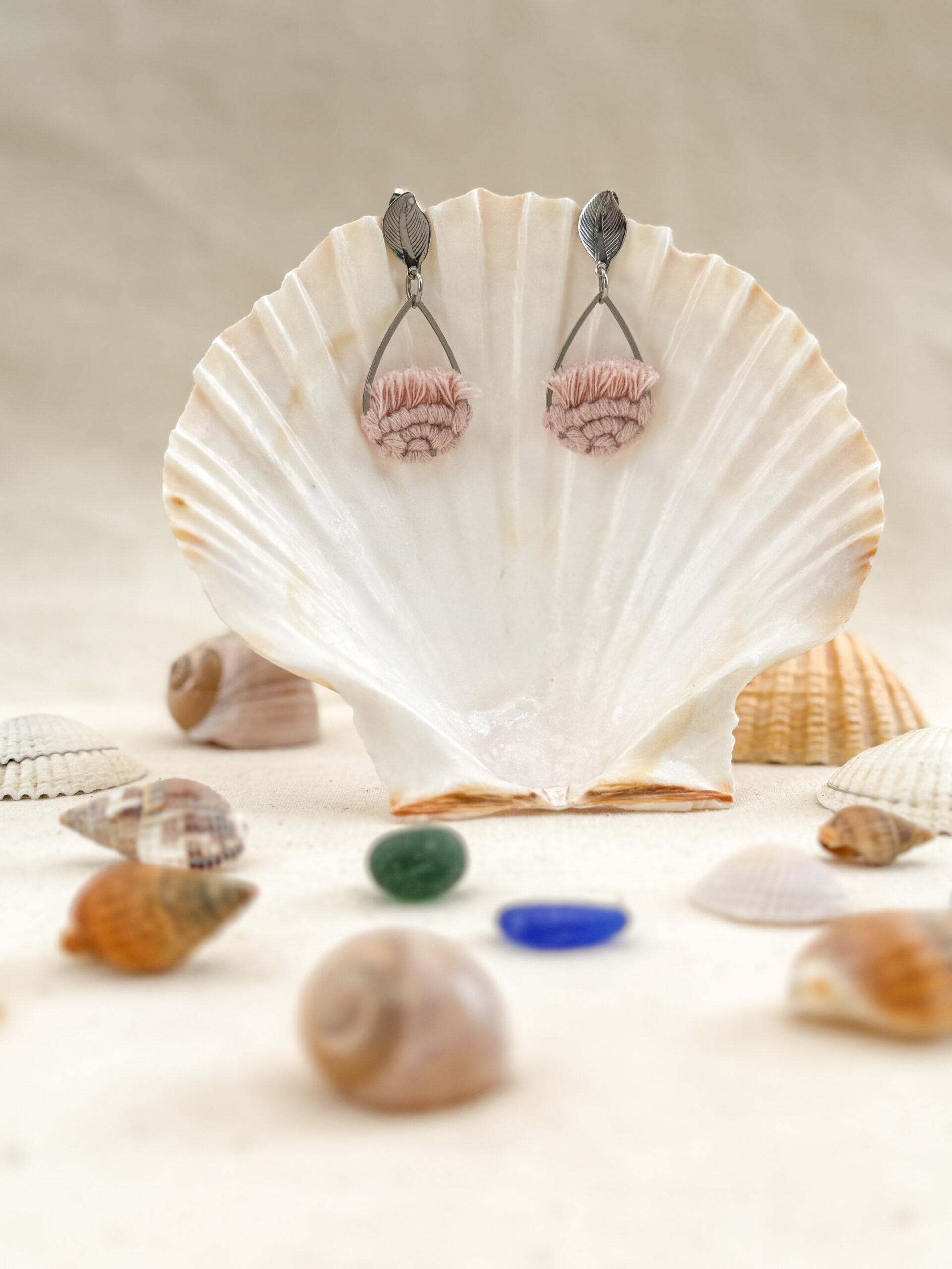 Comme une brise qui effleure la surface de l’eau, Ondine est une invitation à la douceur et à la légèreté. Ces boucles d’oreilles en macramé, tissées à la main avec soin sont confectionnées en 100 % coton certifié Oeko-Tex, garantissant un contact sûr et respectueux avec la peau. Les attaches en forme de feuille et les gouttes en acier inoxydable ajoutent une touche délicate et élégante, tout en assurant confort et durabilité.